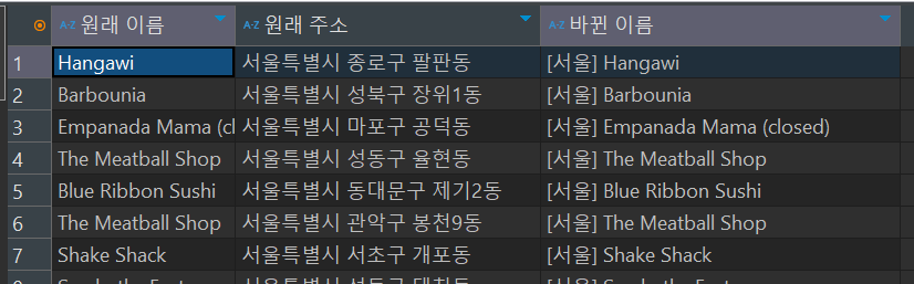 select restaurant_name "원래 이름",