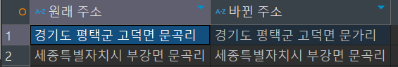 조건 1. 문곡리의 모든 주소 (WHERE) 중 평택군이 포함된 주소의 문곡리를 문가리로 변경(IF,SUBSTR)