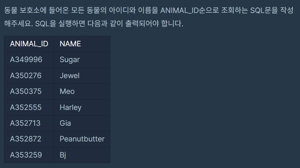 ORDER BY ANIMAL_ID;